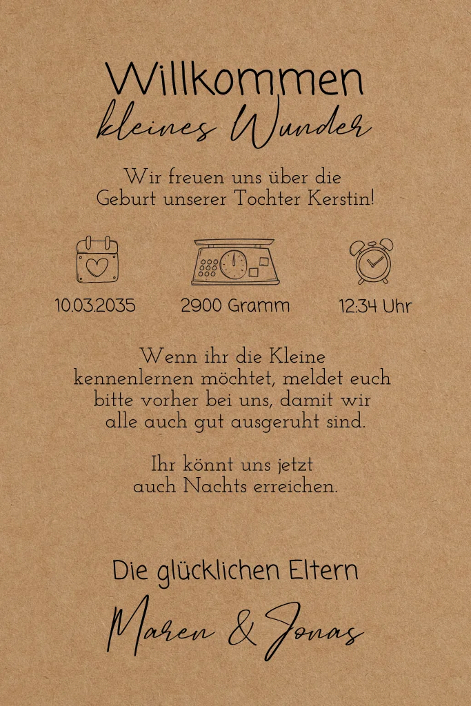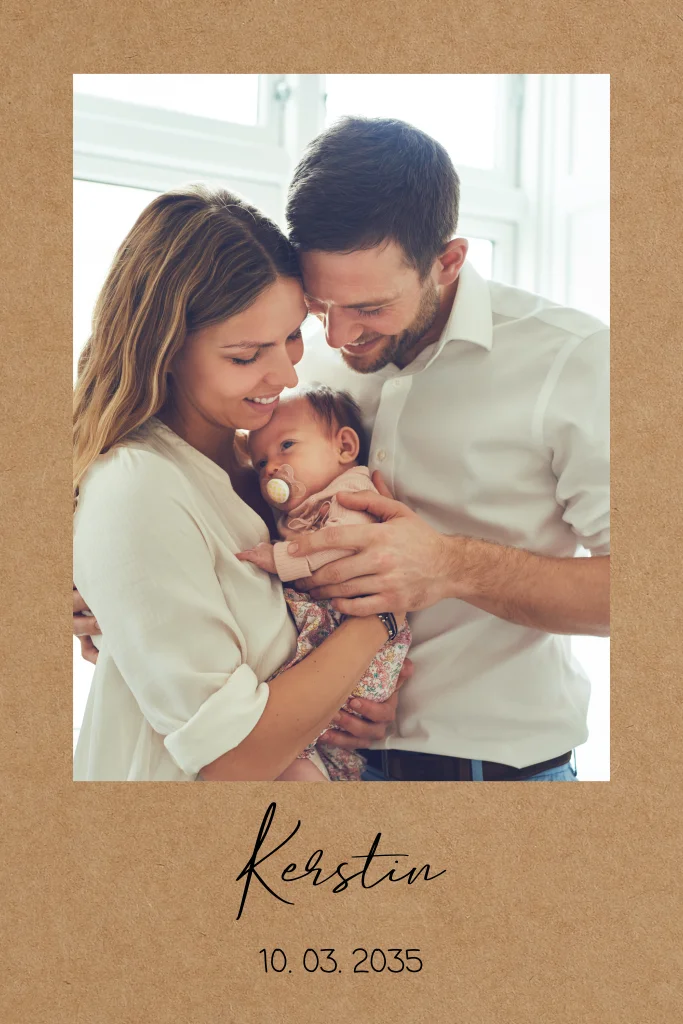 Ein liebevolles Hallo und eine tolle Erinnerung in Form eines Polaroids in Kraftpapieroptik. Kündigt euer Wunder als glückliche Eltern bei euren Liebsten an und lasst die Bildzeichen für sich sprechen. Alles auf einen Blick.