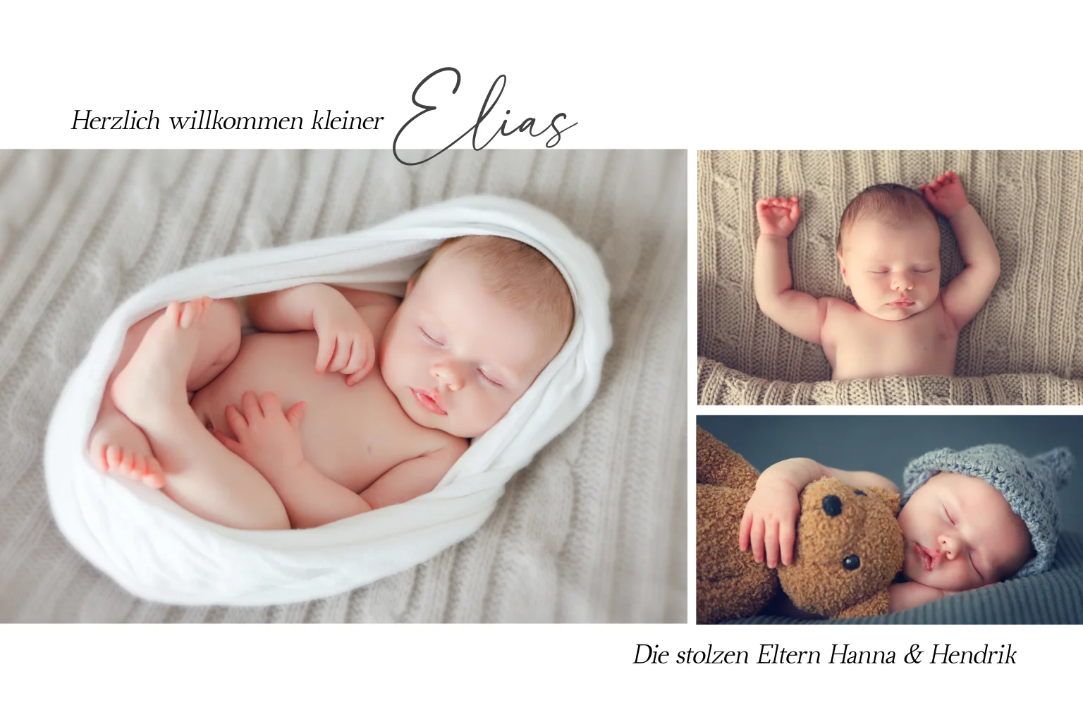 Voller Stolz präsentiert ihr euer kleines Wunder. Euer größtes Glück, sagt die Liebe. Die ersten Fotos eures Babys sind pure Liebe und verzaubern eure Liebsten augenblicklich mit dieser Geburtskarte. Lasst alle an eurer Freude teilhaben.