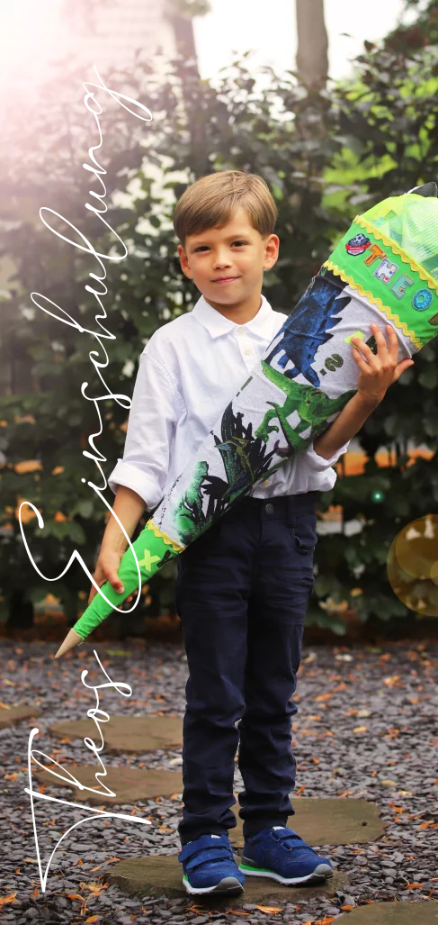 Personalisierte Einschulungskarte im Schuldesign. Verwende unseren Editor, um das Foto anzupassen.