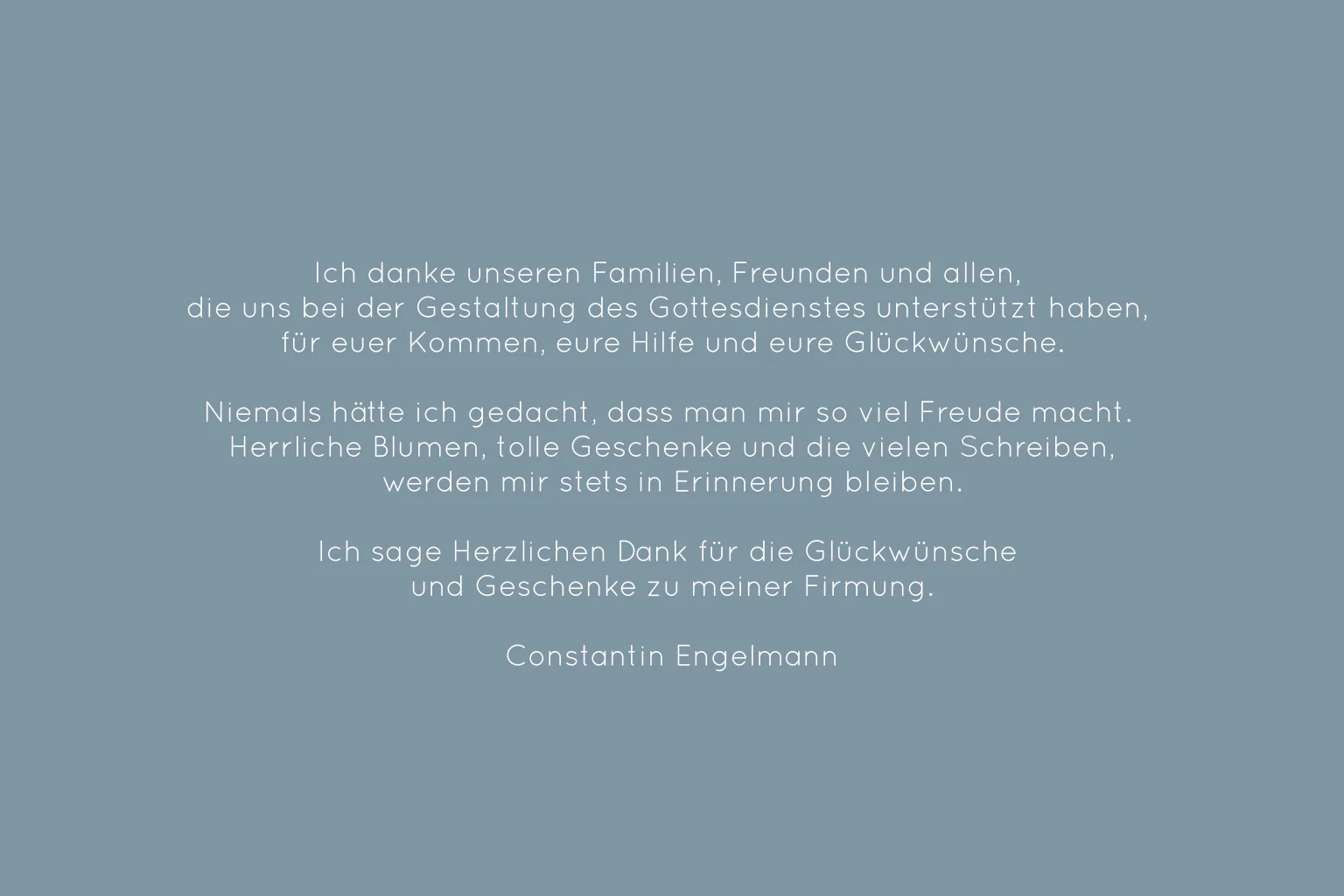 Die Erinnerungen an deine Firmung bleiben für immer. Sorge mit dieser Dankeskarte mit dem Ichthys und deinem Lieblingsfoto auf der Hintergrundfarbe deiner Wahl für einen würdigen Abschluss deines großen Tages. Bedanke dich für die Gestaltung des Gottesdienstes und die bezaubernden Geschenke.