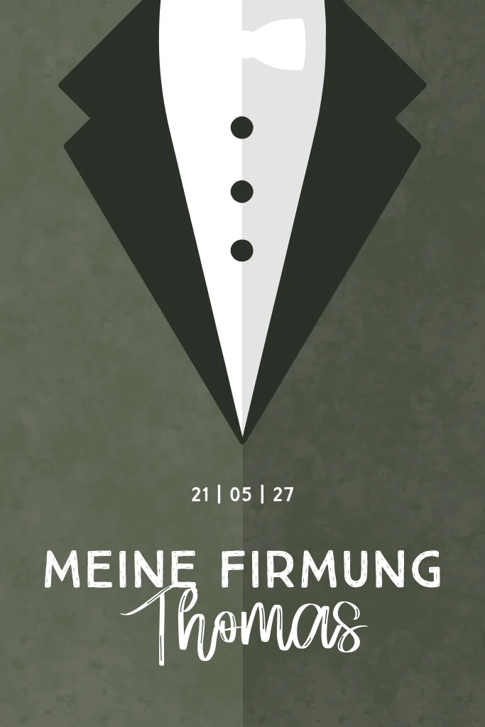 Ein elegantes Kommunion-Kärtchen im Smoking-Design. Jetzt personalisieren in unserem Editor.