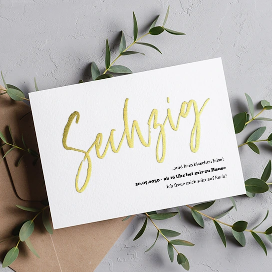 Sechzig und kein bisschen leise. Kündige mit dem großen Zahlenschriftzug in Goldoptik an, dass deine große Feier ansteht. Dein 70. Geburtstag muss feierlich begangen werden. Überrasche deine Gäste mit deinem Lieblingsfoto in der Innenseite und lade zum rauschenden Fest ein.