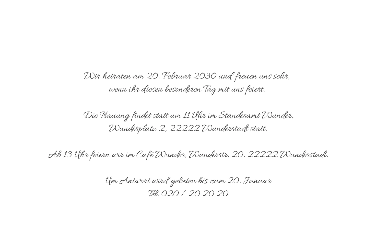 Nutzt bei dieser originellen Freitrunk Hochzeitskarte eine unserer Textveredelungen für die großen Schriftzüge auf der Vorderseite. Stellt so die Freigetränke in den Mittelpunkt und erwähnt beiläufig, dass ihr heiraten werdet. Eure Gäste werden Augen machen.