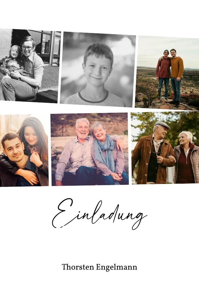90 Jahre hier auf Erden, dass muss eindeutig gefeiert werden! Lade deine Gäste mit dieser Einladungskarte ein, bei denen Sie auf die Frontseite Fotos von früher und heute zeigen.