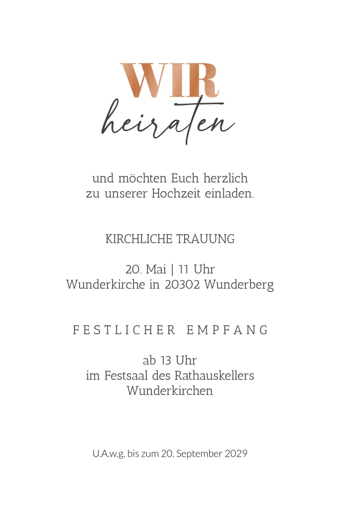 Modern ziert der hervorstechende Einladungsschriftzug in eine unserer Textveredelungen auf der Vorderseite euer Lieblingsfoto. Eure Liebesschnappschüsse gepaart mit Herzchen und einem Unendlichkeitszeichen im Inneren kündigen eure Hochzeit groß an und lassen eure Liebsten wissen, dass es für immer sein soll.