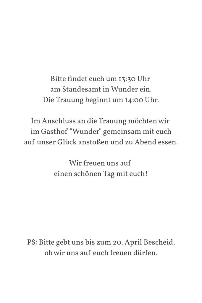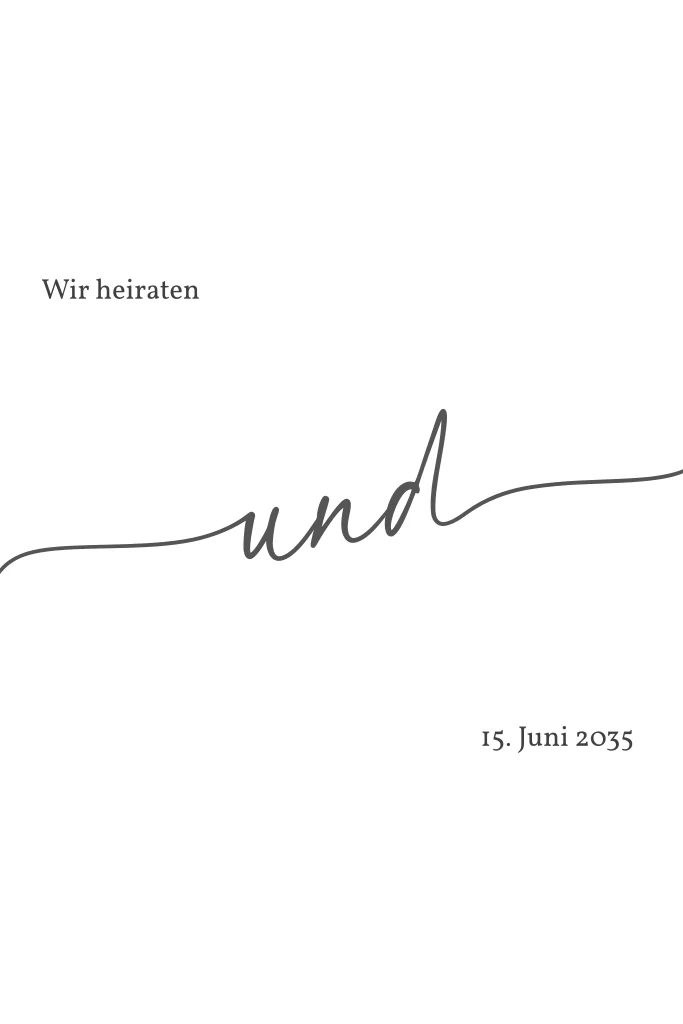 Eure Vornamen in eine unserer Textveredelungen mit dem schwungvollen Und zeigen wie unzertrennlich ihr seid und dass es nun für Immer sein soll. Eine grandiose Einladungskarte für eure Hochzeit. Verzaubert eure Gäste schon vor eurem großen Tag.