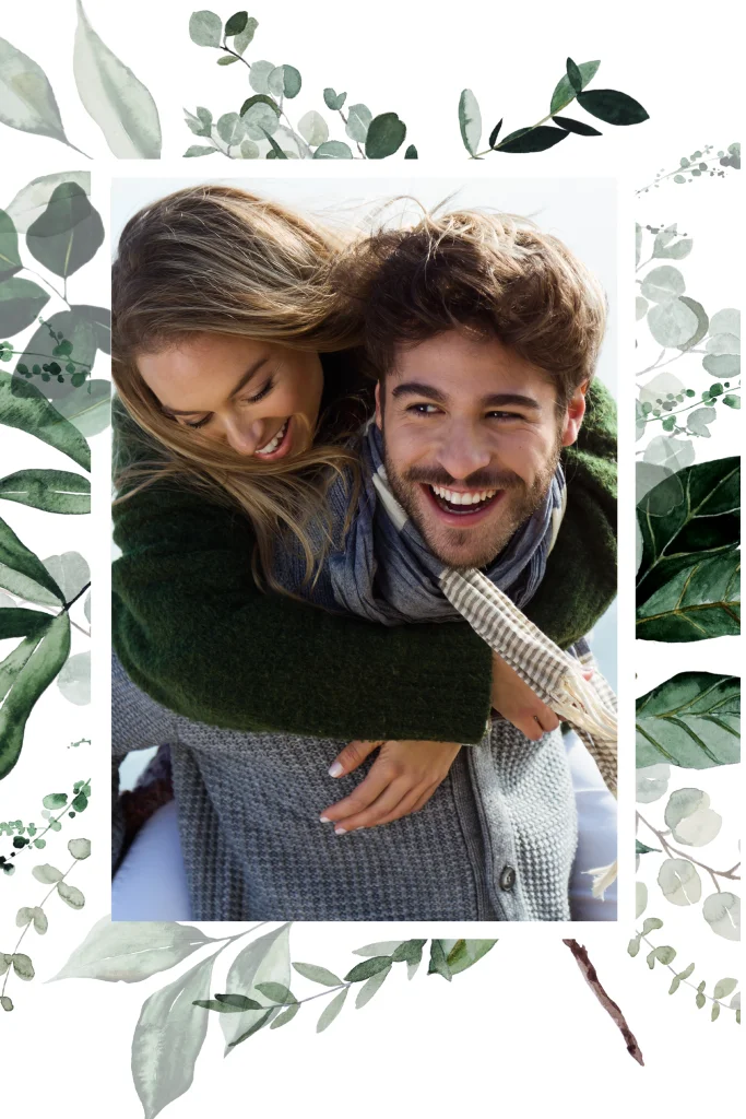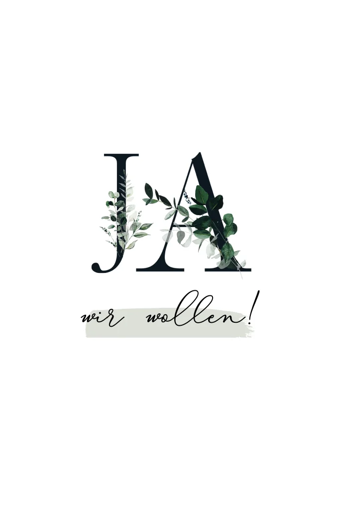 Das kleine Wörtchen Ja mit großer Bedeutung wird mit filigranem Blattwerk umschmeichelt und setzt euer Vorhaben "Ja wir wollen!" gekonnt in Szene. Save the Date! Im Inneren findet sich das zarte Grün wieder, bietet Platz für einen Spruch und euer Lieblingsfoto. Auf der Rückseite könnt ihr euer Datum ankündigen.