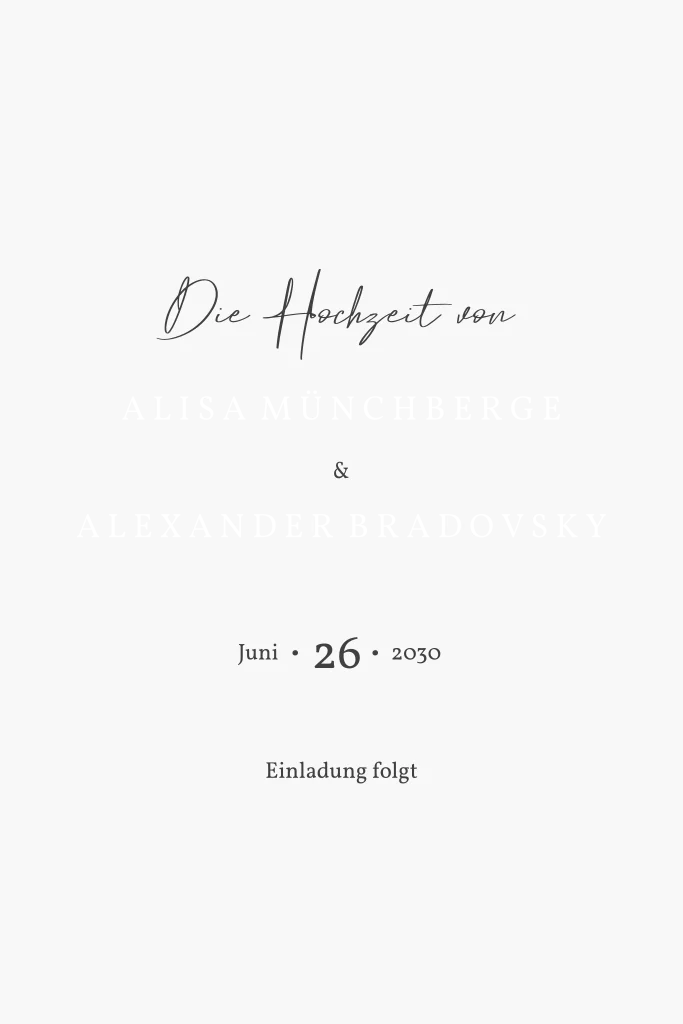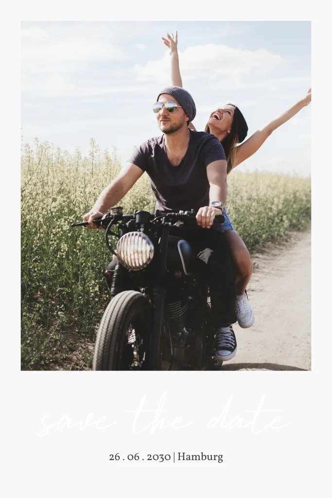 Edel und elegant kündigt ihr mit eurem Lieblingsfoto euren großen Tag an. Save the Date für eure Hochzeit. Informiert eure Gäste rechtzeitig über den Termin für den wichtigsten Tag eures Lebens, damit sie ihn reservieren können und er ein fester Bestandteil ihres Terminplaners wird.