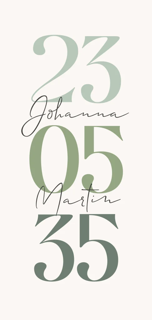 Elegante Save The Date Karte für eure Hochzeit. Gestalten Sie das minimalistische grüne Design in unserem Editor.