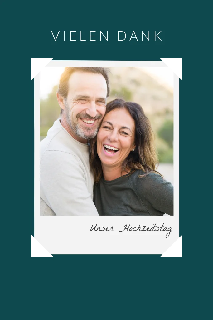 Den Mittelpunkt dieser Einladungskarte bildet ein Portraitfoto zu eurem Hochzeitsjubiläum in Form eines Polaroids mit Fotoecken aus Silberfolie. Feiert mit euren Liebsten eure Liebe, eure bezaubernden Kinder und Enkelkinder. Freut euch auf eine tolle Feier zu eurem Hochzeitstag.