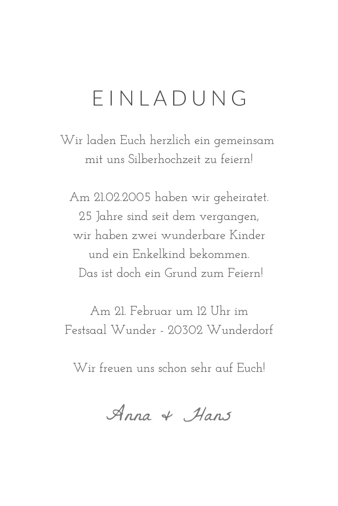 Einladung Silberne Hochzeit