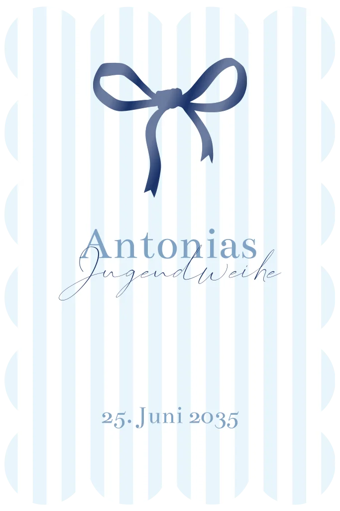 Personalisierbare Jugendweihe Einladung in Blau-Weiß, erstelle deine Karte online im Editor.