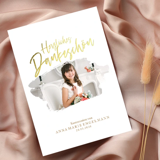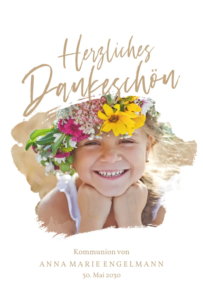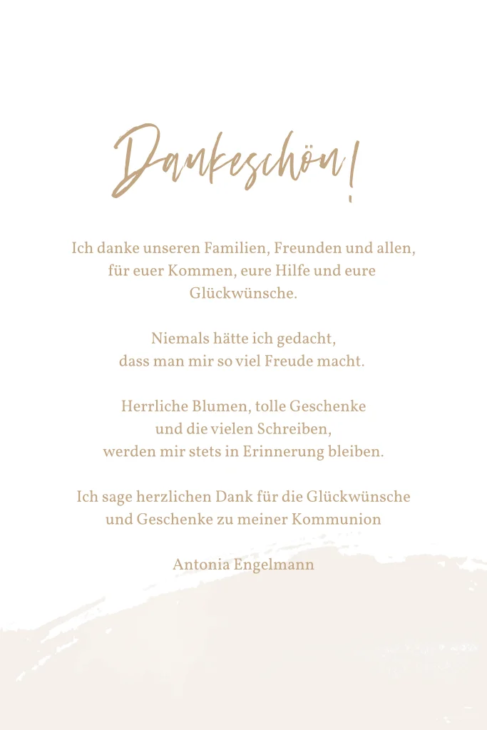Wage den Blick durch das Aquarellfenster und sprich mit dieser einzigartigen Dankeskarte dein herzliches Dankeschön aus. Bedanke dich für die tolle Kommunion, die vielen Glückwünsche und die zauberhaften Geschenke.