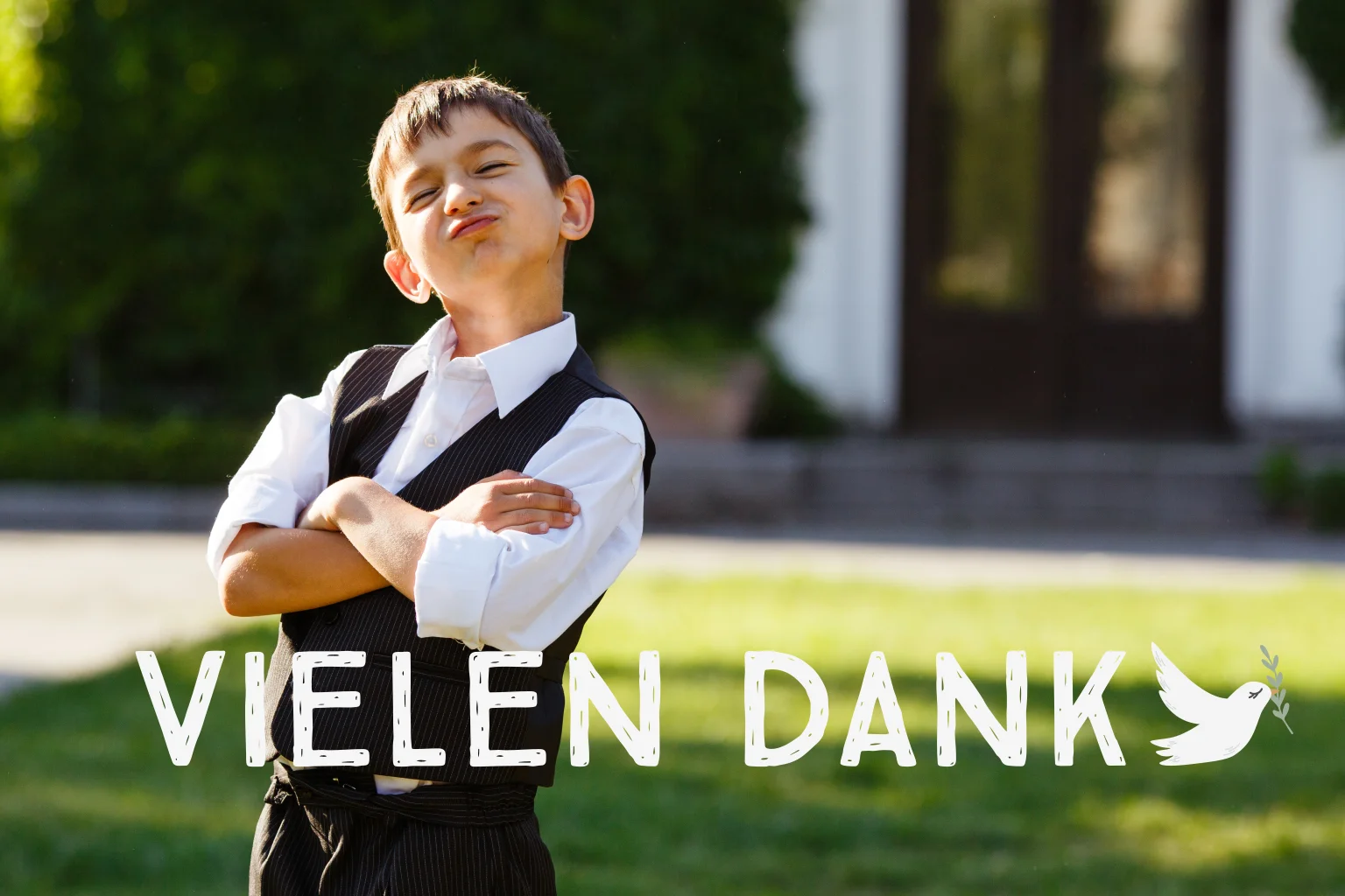 Eine tolle Kommunion geht vorüber. Es ist Zeit, danke zu sagen mit einem Foto deines Tages und dem modernen Schriftzug mit der kleinen Taube mit dem Zweiglein. Für die Rückseite kannst du dir eine tolle Hintergrundfarbe aussuchen.