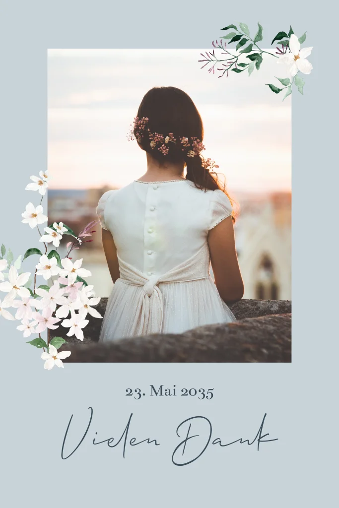 Stilvolle Dankeskarte zur Hochzeit mit Blumenmotiv, personalisieren Sie Ihre Karte in unserem Editor.