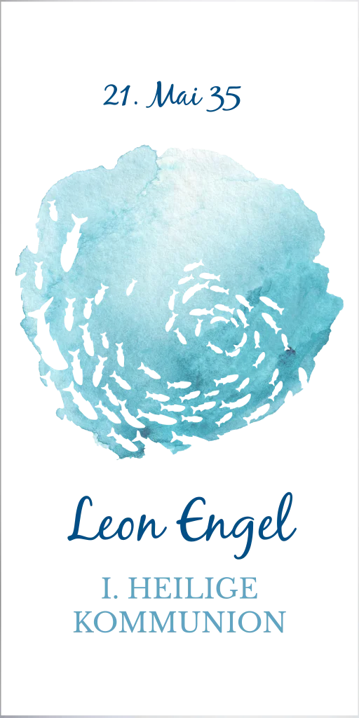 Diese Kerze zur Kommunion ist mit einem Fischschwarm auf blauen Untergrund. Füge den Namen deines Kindes sowie das Datum des besonderen Tages hinzu. Auch perfekt zum Verschenken.
