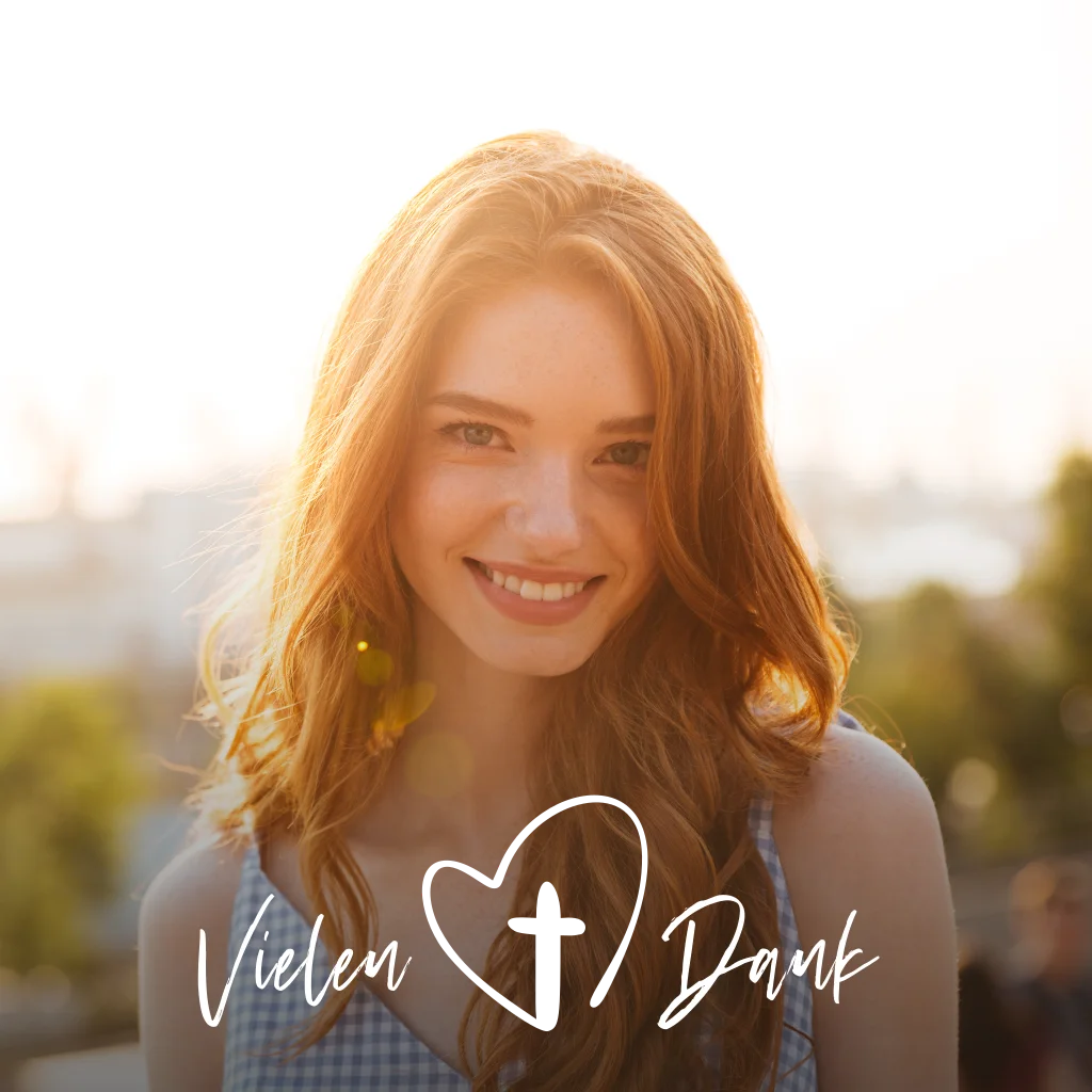 Dein Lieblingsmoment deiner Konfirmation mit dem modernen geschwungenen Dankesschriftzug und dem Kreuz, umschwungen von einem Herz in Goldfolie machen deine Danksagung zu einem echten Hingucker. Bedanke dich herzlichst im Inneren unter dem Ichthys, umschlossen vom Kreuz.