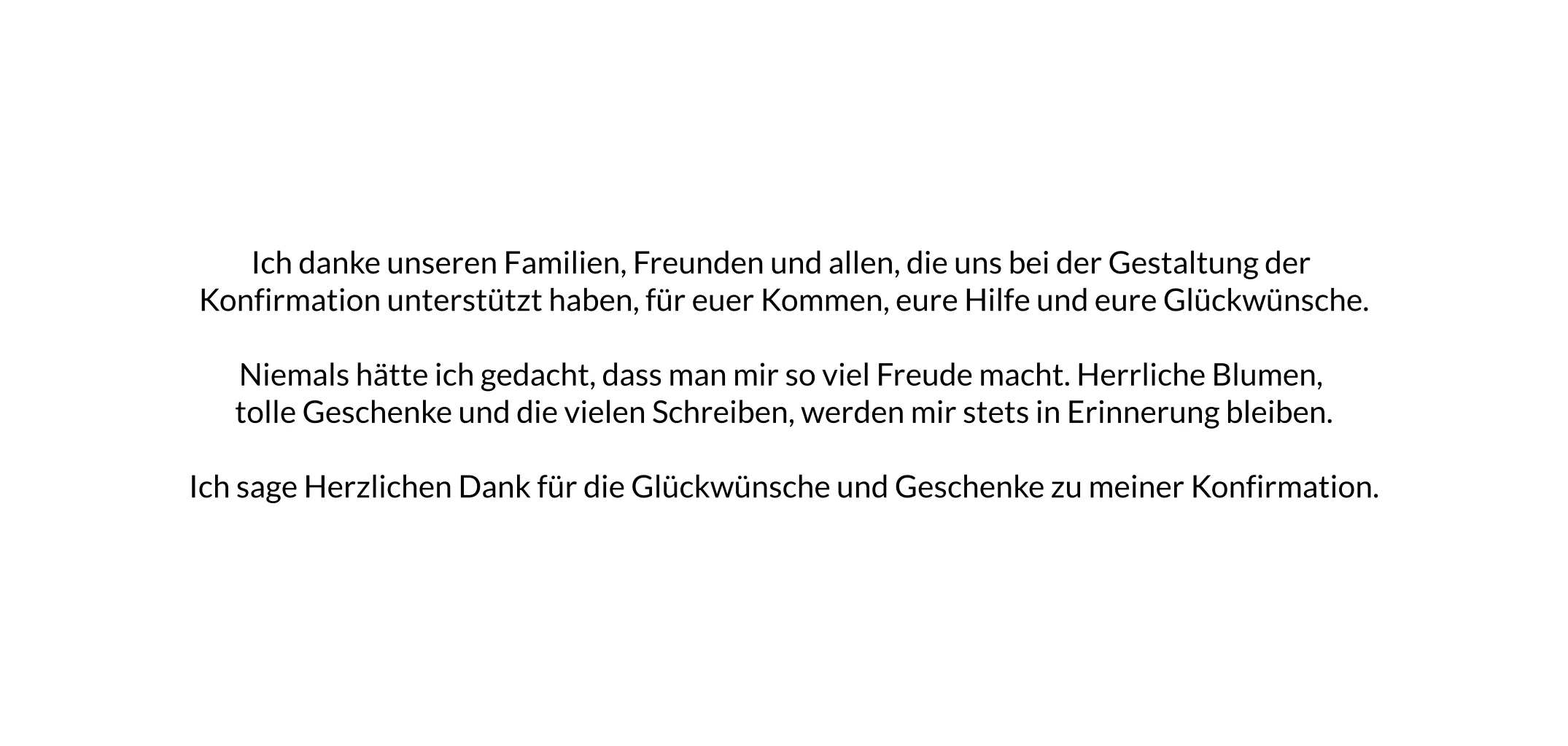 Simply lovely - einfach schön. Bedanke dich mit dieser ansprechenden Dankeskarte und deinen Lieblingsfotos und dem geschwungenen Schriftzug Vielen Dank, verbunden durch ein Herz, in eine unserer Textveredelungen für deine Konfirmation.