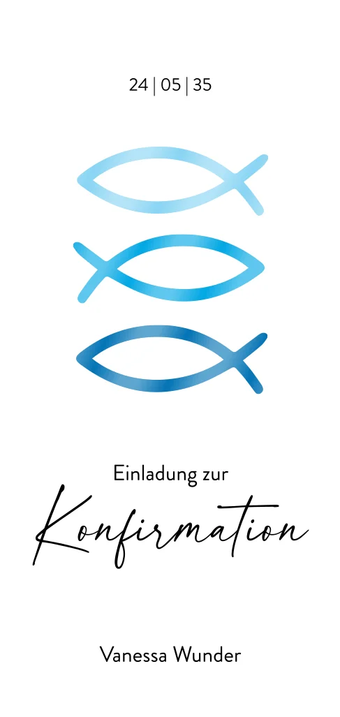 Ein großer Tag in deinem Leben verlangt ein einzigartiges Kartenformat. Überbringe mit dieser über sich hinaus wachsenden Karte mit Ichthys im blauen hochglänzenden Farbverlauf die Einladung für deine Konfirmation. Freude dich auf einen tollen Tag für deinen neuen Meilenstein.