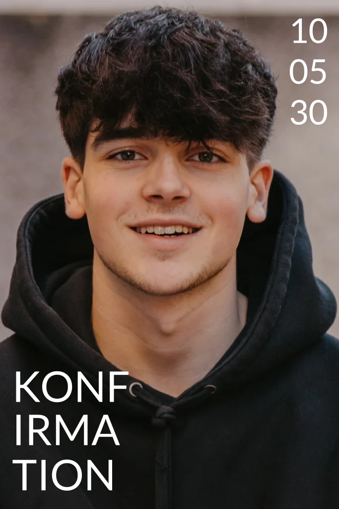 Hyper modern und stylisch kannst du mit dieser Einladungskarte zu deiner Konfirmation einladen. Platziere auf der Vorderseite ein cooles Foto von dir und wähle für den Konfirmationsschriftzug und dein Datum eine unserer Textveredelungen.
