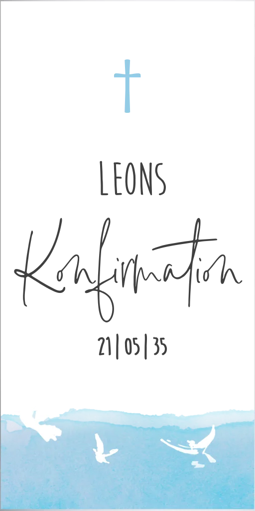 Diese Kerze ist ein wundervolles Geschenk zur Konfirmation. Platziere den Namen des Kindes und das Datum des besonderen Tages. Das Design ist in einem zarten Blauton mit 3 kleinen weißen Tauben.