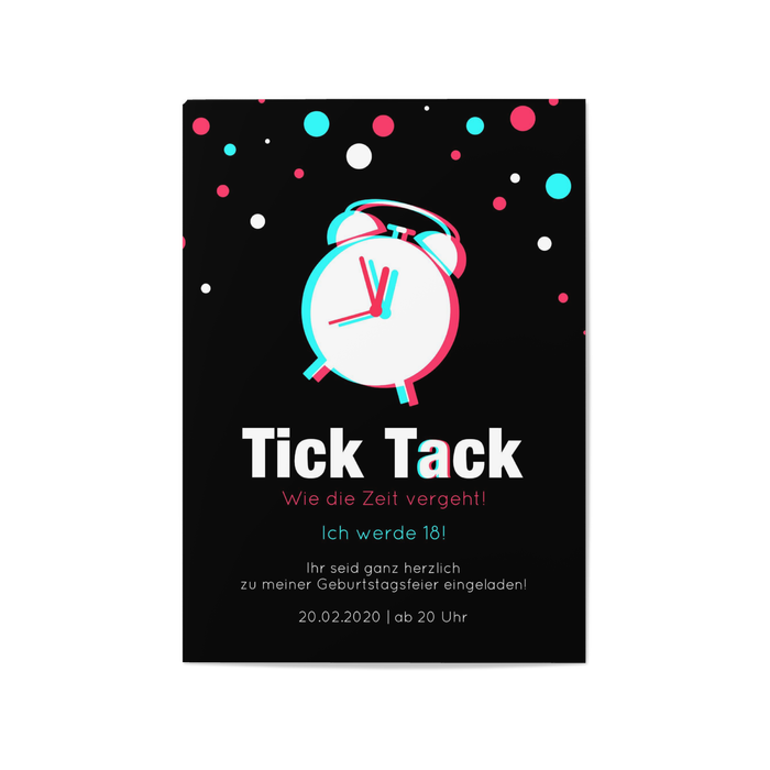 Einladungskarte 18. Geburtstag Tick Tack - Zeit vergeht