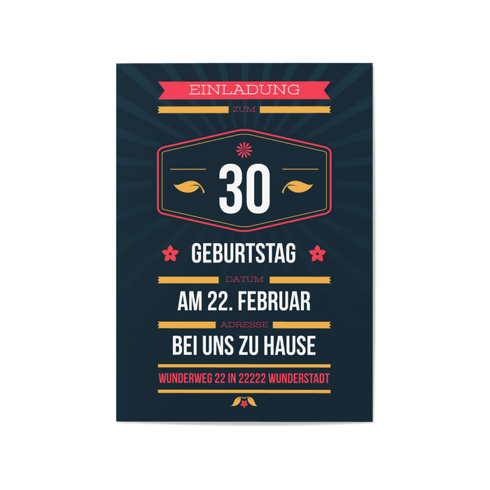 Einladungskarte 30. Geburtstag Dezenter Schein
