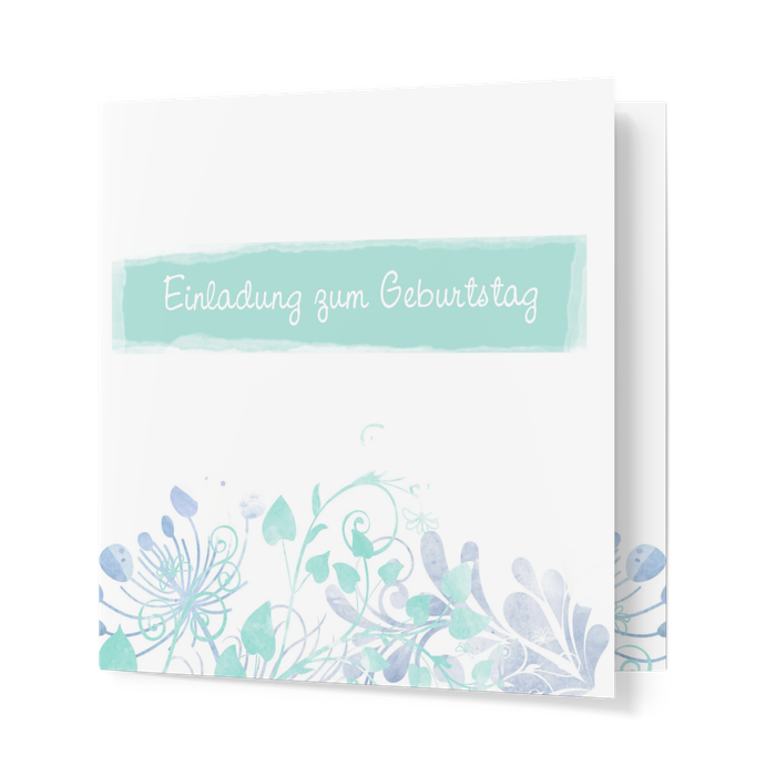 Einladungskarte 50. Geburtstag Aquarell in Blau