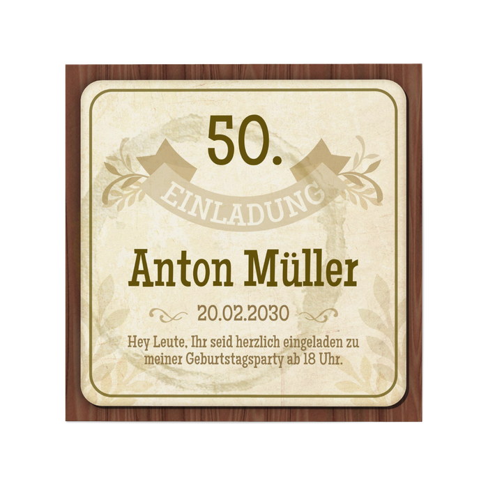 Einladungskarte 50. Geburtstag Bierdeckel
