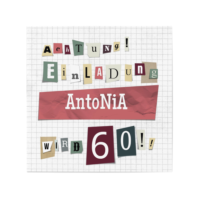 Einladungskarte 60. Geburtstag Erpresserbrief in Rosé und Vanille