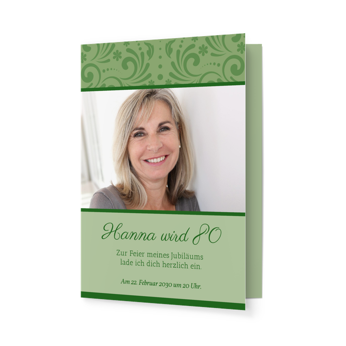 Einladungskarte 80. Geburtstag Elegante Zierde in Grün