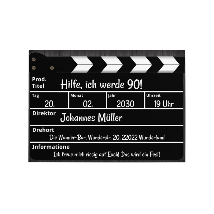 Einladungskarte 90. Geburtstag Regieklappe