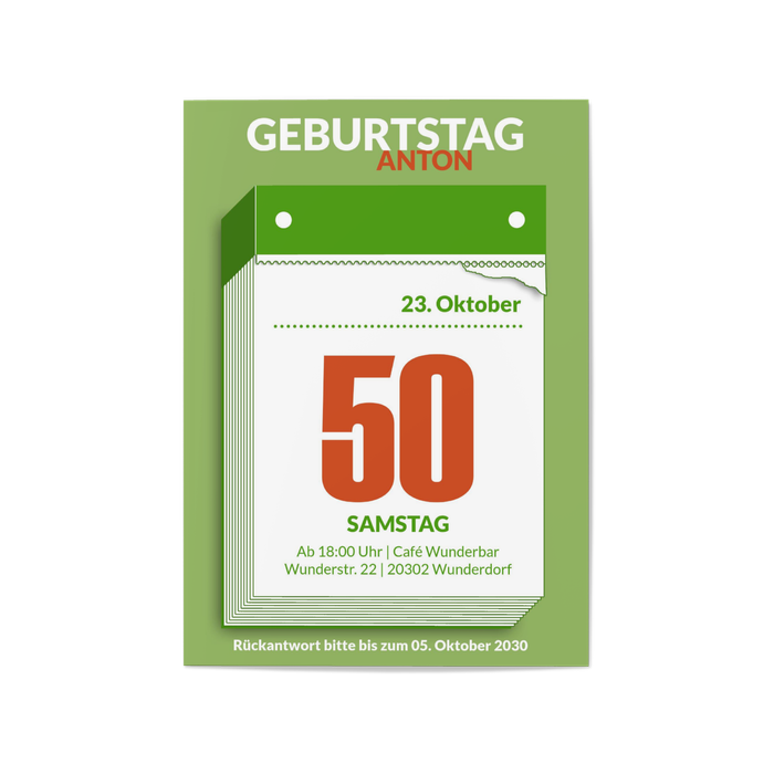 Einladungskarte 50. Geburtstag Abreißkalender in Grün