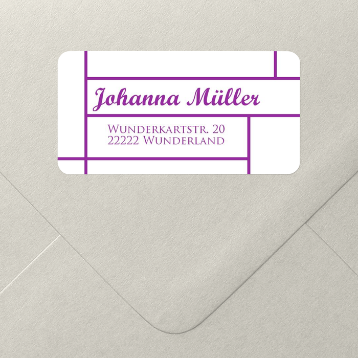 Ein extra erstellter Adressaufkleber sorgt für Aufmerksamkeit, erst recht, wenn er so kunstvoll gestaltet ist wie dieser. In Weiß und Lila gehalten ist dieser Aufkleber der perfekte Hingucker für Ihre privaten und geschäftlichen Briefumschläge. Einfach Namen und Adresse eintragen - schon fertig!
