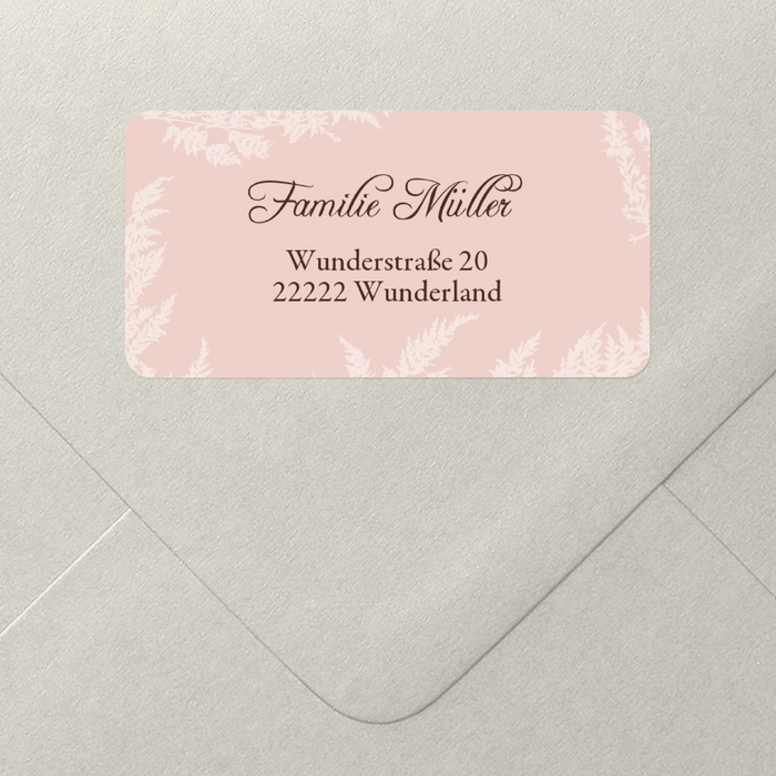 Nutzen Sie diesen Adressaufkleber mit einer verspielten Blumenranke in Rosa für Ihre Dankeskarte zur Konfirmation.