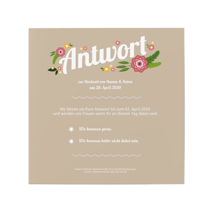Antwortkarte Hochzeit Blumenhochzeit in Beige