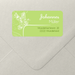 Auf diesem grasgrünen Adressetikett harmonieren die Taube, mit ihren schmuckvollen Blumenelementen und die ganz leicht erkennbaren Elemente, die den Hintergrund zieren. Nur Ihre Anschrift fehlt noch, um diesen Aufkleber perfekt zu machen.