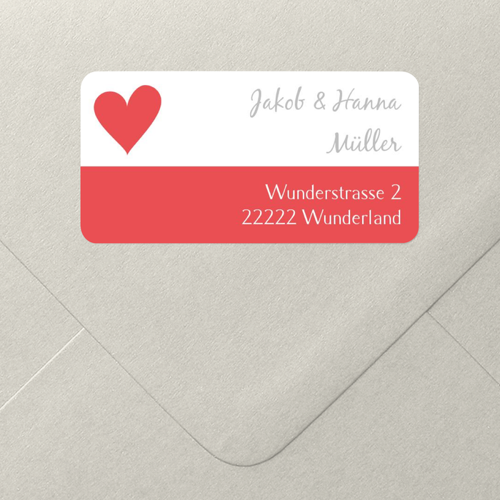 Ihre Liebe soll jeder sehen. Schon von außen auf dem Briefumschlag strahlt den Empfängern der zauberhafte Adressaufkleber Herz in Rot entgegen. Nutzen Sie den Aufkleber für Ihre Hochzeitseinladungen, die Save the Date-Karten sowie die Dankeskarten.