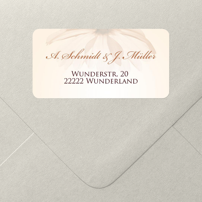 Der Adressaufkleber in zartem Braun wirkt durch die Blume besonders elegant. Das Etikett verleiht Ihrer Post den letzten Schliff.