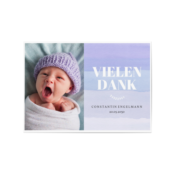 Dankeskarte Geburt Aquarellhintergrund Blau