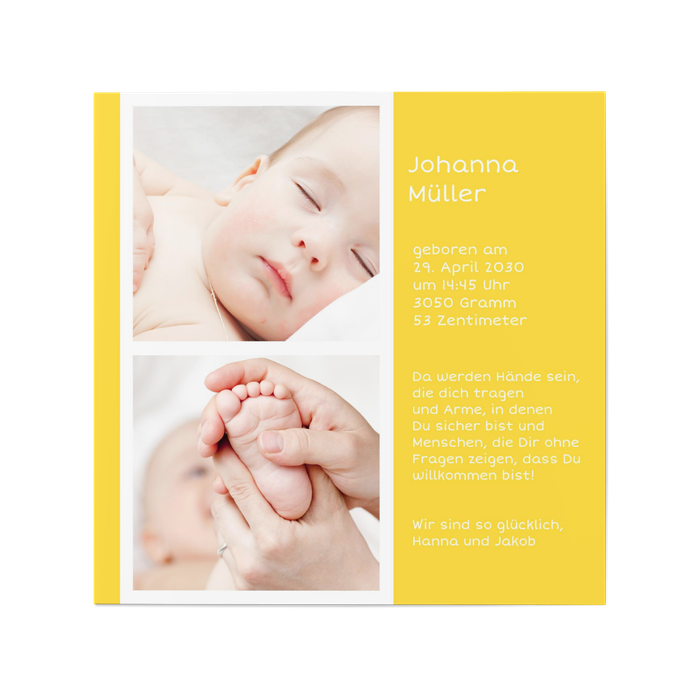 Babykarte für Mädchen Farbstreifen in Gelb