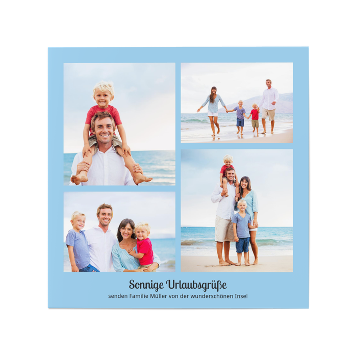 Karte mit eigenem Design Quadrat - Vier Fotos - Blau