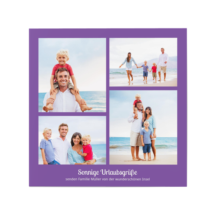 Karte mit eigenem Design Quadrat - Vier Fotos - Lila