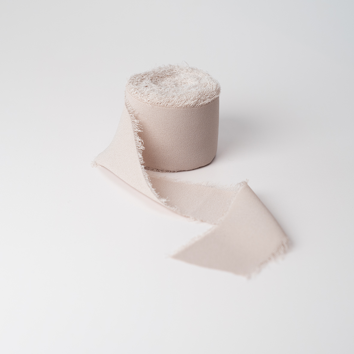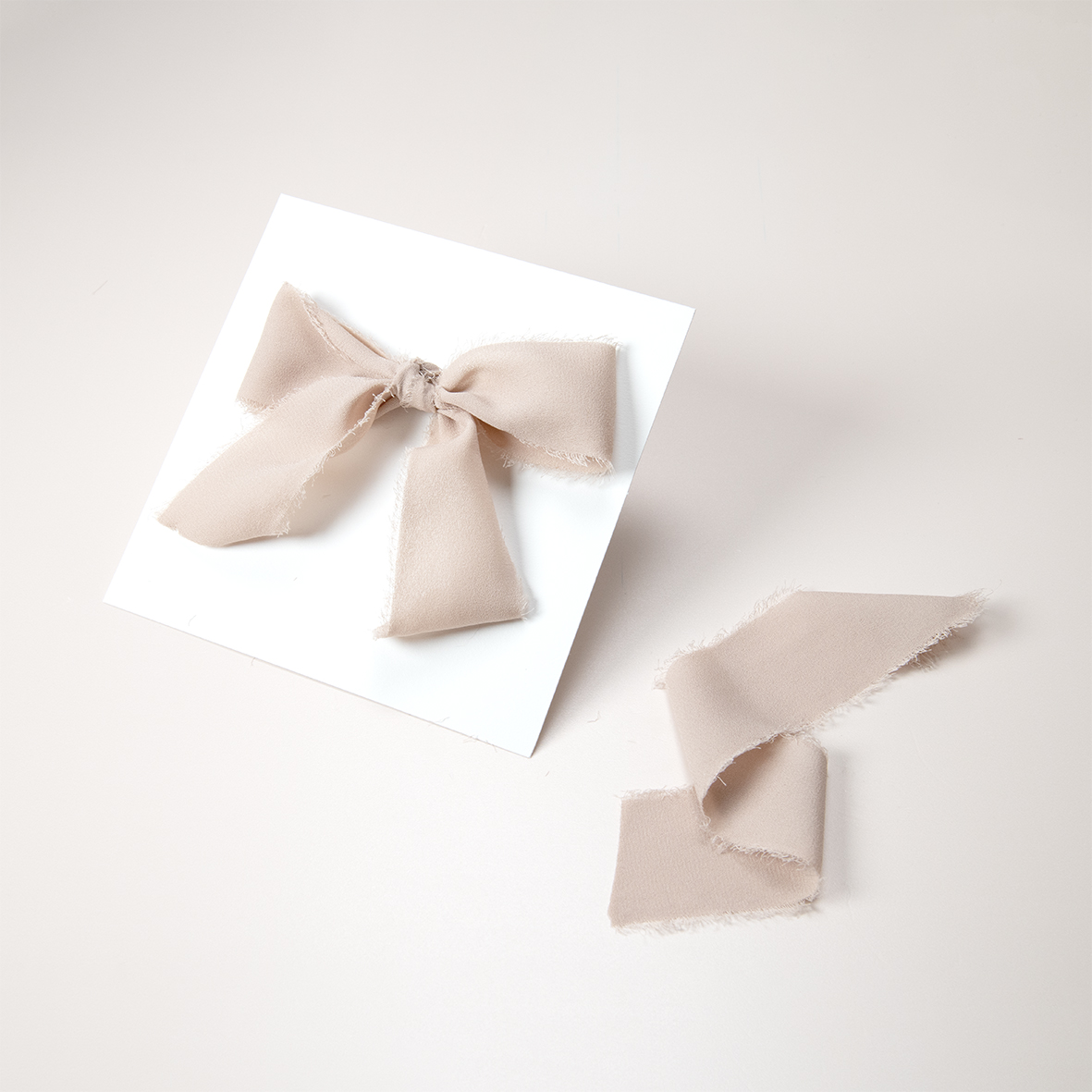 Beige chiffon zijden lint (20 meter). Je ontvangt 2 rollen van 10 meter. Geschikt om ca. 50 kaarten mee te versieren.