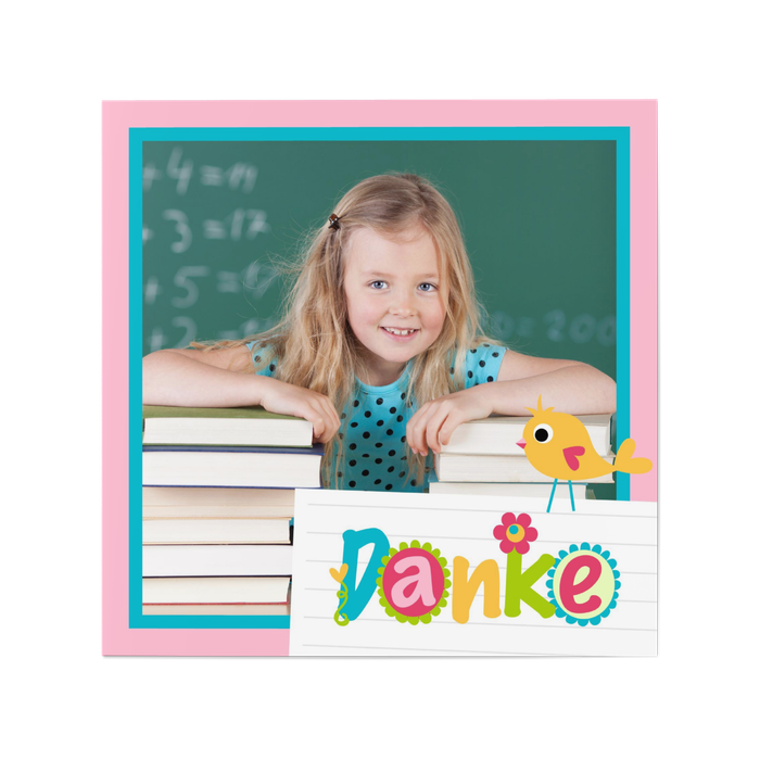 Dankeskarte Einschulung Bunte Schule in Rosa