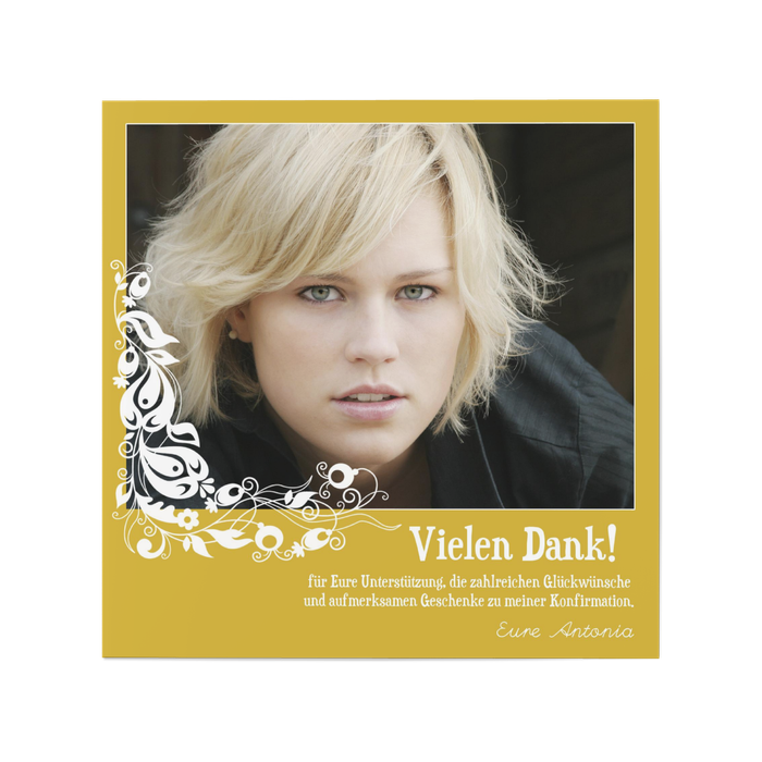 Nach der Jugendweihe möchten Sie nun natürlich allen danken, die diesen wunderbaren Tag mit Ihnen erlebt haben, und vielleicht sogar ein aufmerksames Geschenk daließen. Über diese Karte wird sich sicher jeder freuen und durch das große Foto haben Ihre Gäste gleich noch eine wunderbare Erinnerung an Ihren großen Tag.