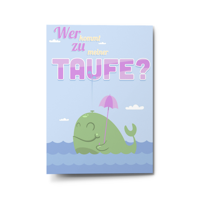 Eine Einladung zur Taufe, die sollte etwas ganz besonderes sein! Warum nicht den kleinen Babywal wählen, der so süß für Sie nachfragt, wer denn alles bei dem großen Ereignis dabei sein möchte? Niemand wird so widerstehen können, und der Zusagen Ihrer Gäste können Sie sich sicher sein.