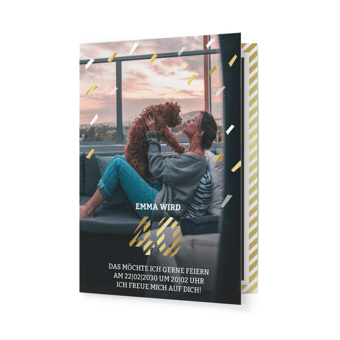 Einladungskarte 40. Geburtstag Konfettiregen Gold