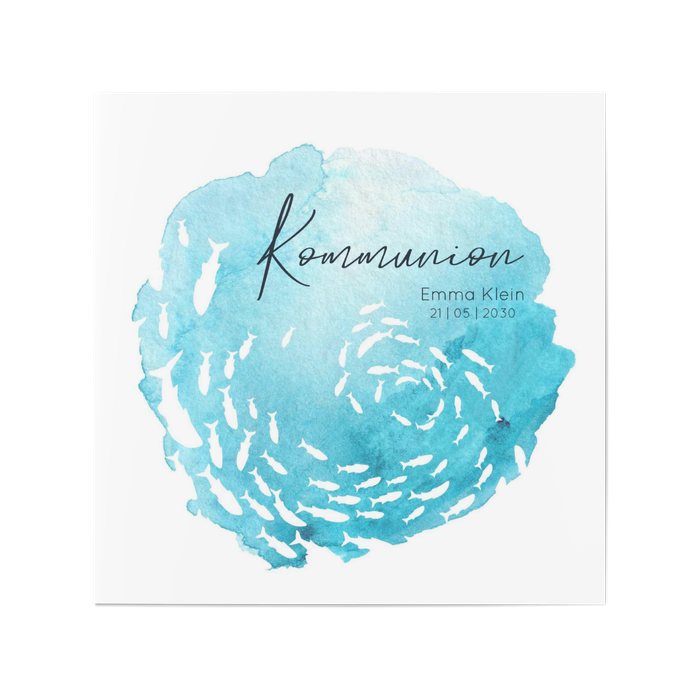 Einladungskarte Kommunion Fischschwarm