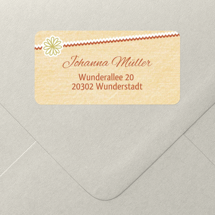Sehr elegant verziert der Adressaufkleber Scrapbook in Orange Ihre Briefe. Die Designelemente der passenden Einladungskarte Scrapbook werden hier aufgegriffen. Machen Sie aus Ihrer Einladung eine rundum gelungene Sache. Oder verwenden Sie den Adressaufkleber einfach für jeden Ihrer Briefe.